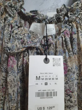 Vestido largo de Zara con un bonito estampado floral y detalles bordados en la cintura. El escote es fruncido y las mangas largas.Talla M sin estrenar - Tejido ligero y vaporoso. - Cintura elástica para un ajuste cómodo. - Largo hasta los tobillos.