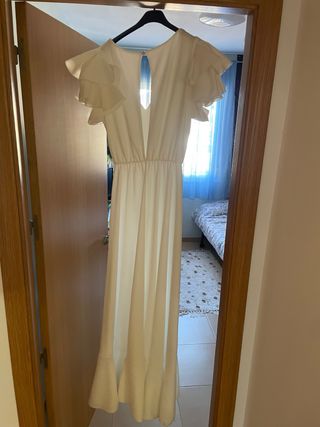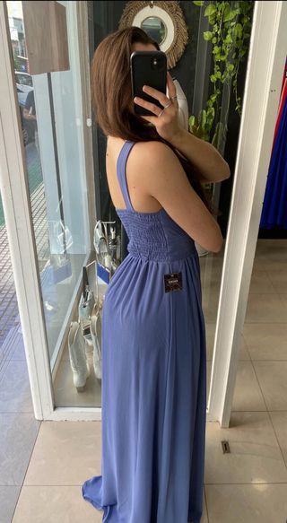 SÓLO ÉSTE MES EN VENTA!!!! Talla M sirve también para S. A estrenar pero se me acaba de caer la etiqueta al probarmelo. Costó 99'99€. Escote en la espalda y queda entallado muy bonito. Largo con raja en un lado y puños de piedreria REBAJADISIMO!!!