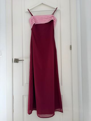 Vestido largo invitada rosa y rojo