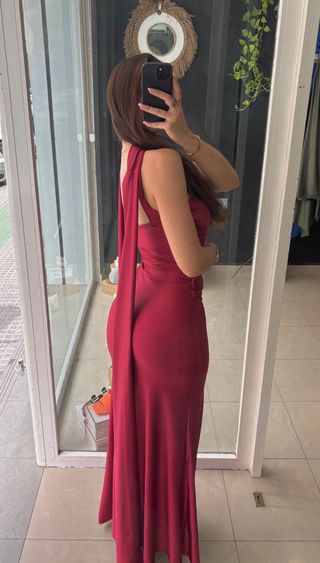Elegante vestido largo, ideal para bodas y eventos especiales. - Diseño halter. - Espalda descubierta con tiras. - Tejido satinado. No he llegado a estrenarlo, está perfecto