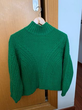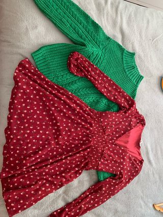Jersey verde y vestido estampado