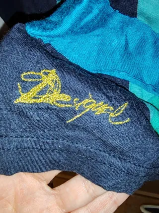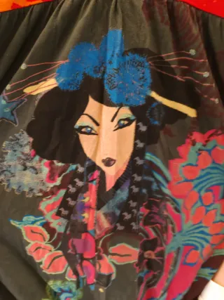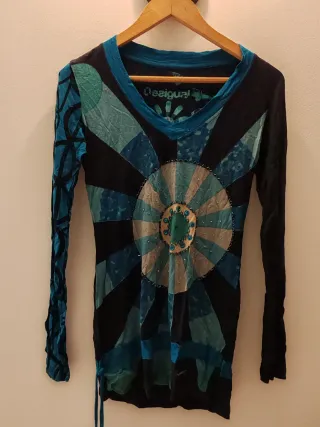 Camiseta de manga larga con un diseño vibrante y llamativo. Perfecta para una tienda vintage de segunda mano. - Estampado frontal con detalles. - Cuello en V. - Mangas largas. Posibilidad de descuento comprando otra camiseta o vestido de Desigual. Posibilidad de vender en pack.