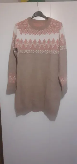Preciosa conjunto de dos piezas en color beis, talla L. -El conjunto incluye un vestido largo y una camiseta de manga larga. - Ambas prendas son de punto acanalado y presentan un diseño elegante y sencillo. - Perfecto para cualquier ocasión. - Diseño versátil y combinable. - Talla L. - SE ENVIA CON LA COMPRA MINIMA DE 10€. - En la ultima foto se ve el color del vestido.