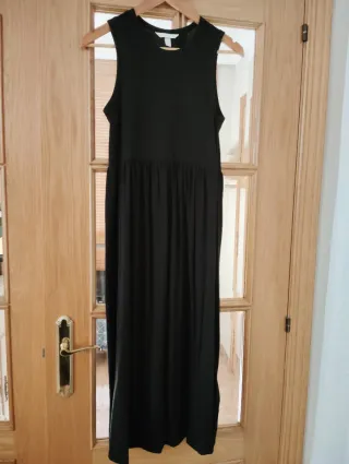 Vestido largo de maternidad en color negro. Ideal para el día a día o para ocasiones especiales. Algodón. - Diseño sin mangas. - Cintura elástica. - Largo hasta los tobillos.