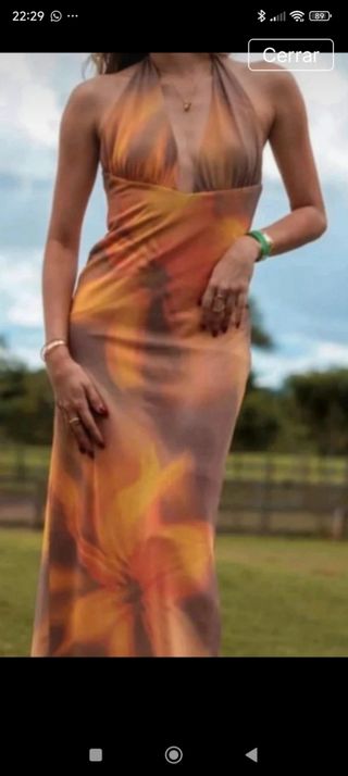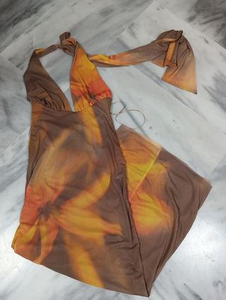 Vestido largo de Zara con un llamativo estampado. - Diseño con escote halter. - Corte fluido y elegante. - Ideal para ocasiones especiales o un look de verano.