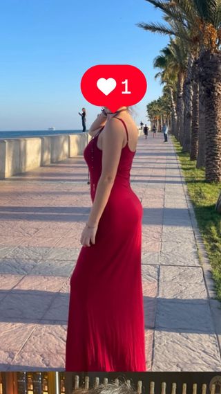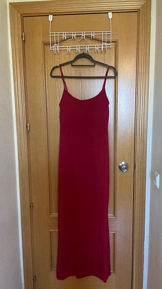 Vestido rojo largo con tirantes. Talla M-L