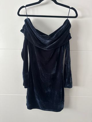 Vestido corto de terciopelo con escote palabra de honor. - Diseño elegante y moderno. - Tejido suave y brillante. - Manga larga. ¡Lo vendo porque lo compré, me queda pequeño y se me pasó el plazo de devolución!