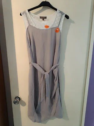 Vestido de la marca BOSS en talla S. - Diseño de tirantes. - Detalle de lunares en la parte superior. - Cinturón a juego para anudar. - Color gris. - Contorno pecho: 80 - Largo: 92