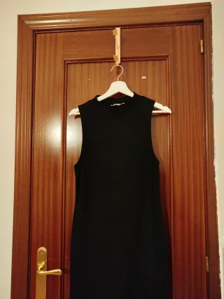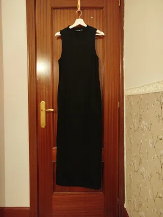 Vestido largo de corte recto y cuello halter. - Diseño sin mangas. - Tejido elástico y cómodo. -Abertura en el lateral. Muy buen estado.