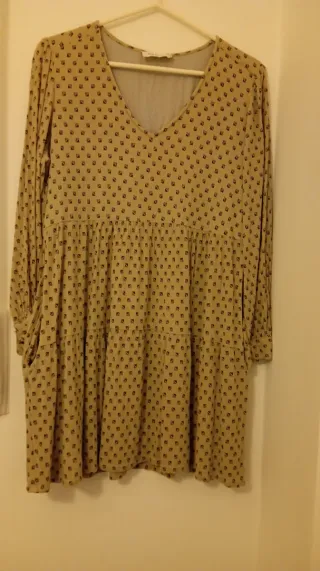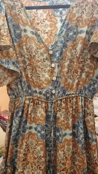 Vestido de verano con un bonito estampado. En perfecto estado con muy poco uso -Sienta muy bien, tiene mucho vuelo - Diseño con escote en V. - Mangas por encima del codo - Largo hasta la rodilla.