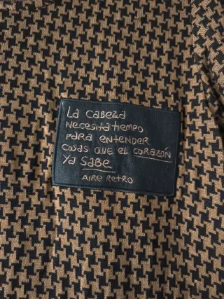 Vestido de corte retro con un estampado geométrico en tonos rojos y blancos. El diseño presenta mangas largas abullonadas y una cintura elástica que estiliza la figura. - Estampado geométrico. - Mangas largas abullonadas. - Cintura elástica. Es la talla más grande que tienen. Es ideal para mujeres con mucho pecho. El vestido está actualmente descatalogado.