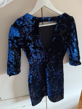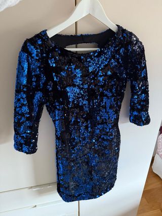 Vestido lentejuelas fiesta azul y negro. Xs grande