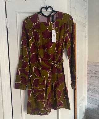 Vestido de Mango con un llamativo estampado. ideal para regalar - Diseño con cinturón anudado. - Manga larga. - Cuello cuadrado.