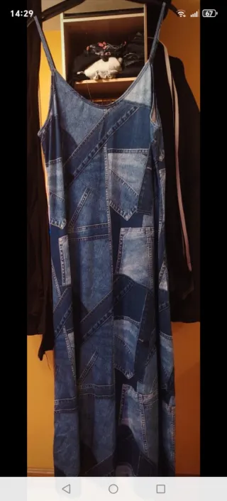 Vestido largo tirantes efecto vaquero