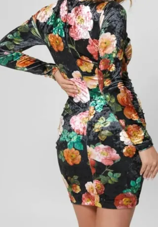 Vestido Guess Terciopelo Floral Mini Fruncido