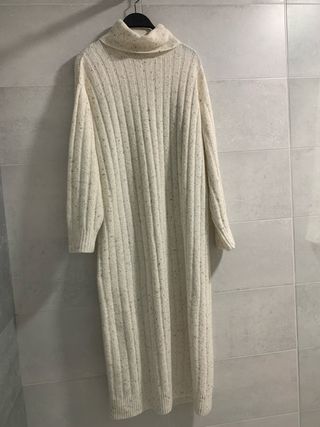 Vestido largo de punto de la marca Vero Moda. Comprado en Asos - Color crema. - Cuello vuelto. - Talla XL.