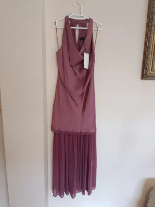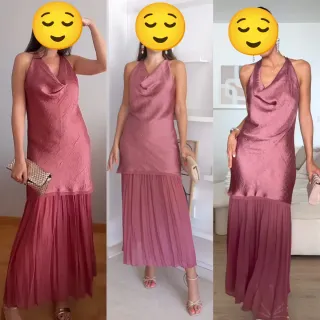Vestido midi largo combinado plisado Cuello halter, fluido. Detalle tejido efecto arrugado combinado con bajo plisado, cierre en espalda con botones Zara talla M Color rosa marsala Vestido ideal para invitada evento ceremonia boda bautizo comunión graduación #invitadaperfecta #invitada #invitadaboda #invitadaideal #invitée #invitéemariage #inviteparfait #weddingdress #inviteeceremonie #invitadalowcost #invitadaconestilo #mariage
