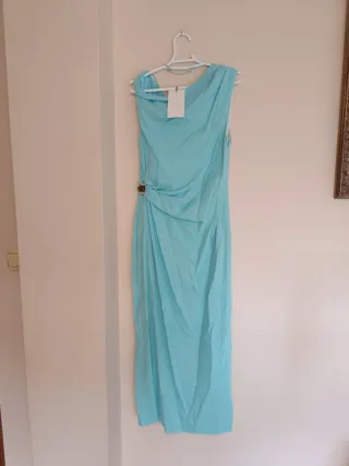 Vestido midi asimétrico aplique con lino Detalle de aplique dorado en cintura. Forro interior. Bajo con abertura en espalda. Cierre lateral con cremallera oculta en costura. Tirante Multiposicion. Color azul Turquesa Zara Talla S Vestido ideal para invitada evento ceremonia boda bautizo comunión graduación #invitadaperfecta #invitada #invitadaboda #invitadaideal #invitée #invitéemariage #inviteparfait #weddingdress #inviteeceremonie #invitadalowcost #invitadaconestilo #mariage