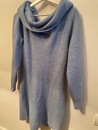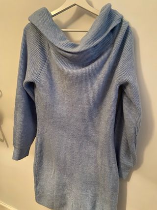 Vestido de punto azul con cuello barco
