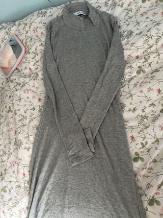 Vestido Mango gris cuello alto manga larga