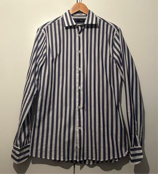Camisa de vestir con un diseño de rayas verticales. Talla: S - Cuello clásico. - Cierre de botones. - Puños abotonados. Se garantiza un embalaje excelente y un envío rápido. Quieres saber más? Pregúntame sin compromiso.