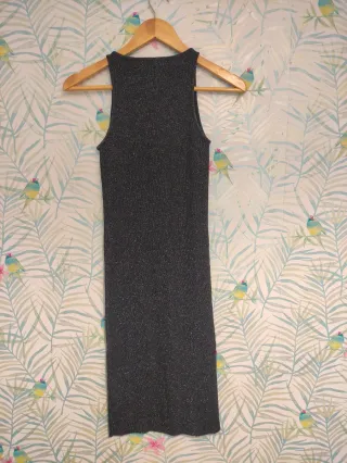 Vestido midi con un diseño elegante y moderno, perfecto para ocasiones especiales. - Tejido con hilo metalizado. - Corte recto y tirantes finos. - Largo midi. Zara Talla M