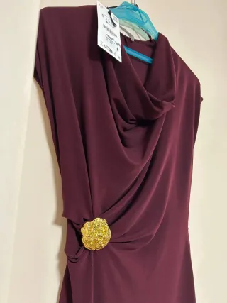 Vestido de escote fluido y manga caída. Detalle de tejido drapeado y fornitura metálica con relieve en delantero. Bajo recto Zara Talla S Color burdeos, granate Vestido ideal para invitada evento ceremonia boda bautizo comunión graduación #invitadaperfecta #invitada #invitadaboda #invitadaideal #invitée #invitéemariage #inviteparfait #weddingdress #inviteeceremonie #invitadalowcost #invitadaconestilo #mariage