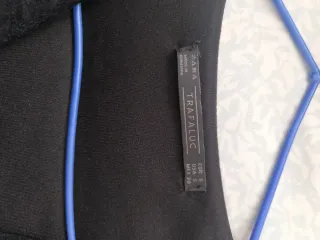 Es qmidi y queda ajustado La tela es elástica Es la talla pequeña de Zara, XS, pero no tiene etiquetas porque raspaban En el pecho queda la arandela plata - Tejido acanalado. - Tirantes finos. - Escote halter. - Abertura lateral.