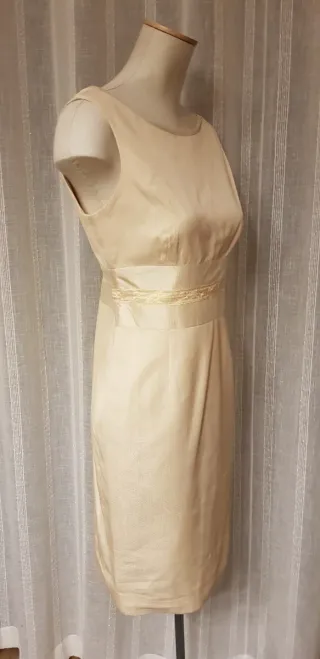 Elegante vestido de corte recto en color beige. - Tejido con textura sutil. - Detalle de cinturón con hilo dorado. - Diseño sin mangas. - largo del vestido, 94 cm - incluye chaqueta a juego. Sólo venta en pedido mínimo de 60€