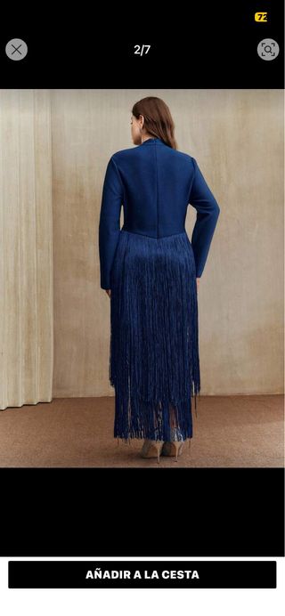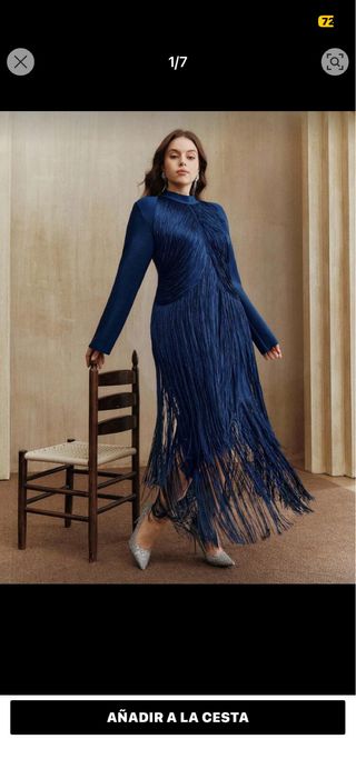 Vestido azul largo de flecos