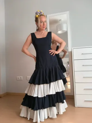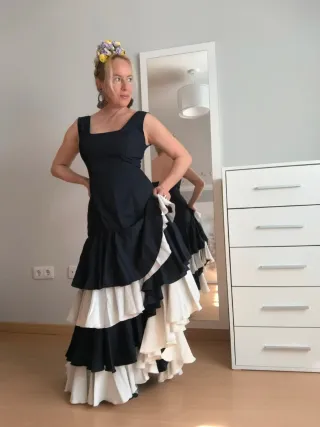 Vestido flamenca largo volantes negro y blanco