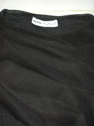 Nuevo con etiquetas. • Medidas: De sisa a sisa 48 cm. Ancho 40 cm. Largo 90 cm. • 95% poliéster, 5% elastano. • Color: Negro con estampado flores grises y moradas. • Transparencias en la parte del pecho.