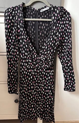 Vestido de Zara con un diseño alegre y juvenil. - Estampado de lunares. - Manga larga. - Bajo con volantes.