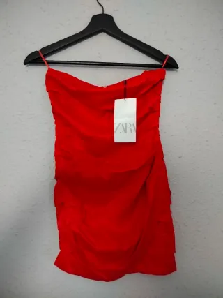 Vestido de Zara con un diseño elegante y favorecedor. - Escote pronunciado. - Falda plisada. - Tejido satinado.