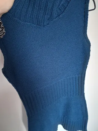Vestido de invierno de punto con cuello alto. Hermoso, no se me en la foto pero puesto toma la forma del cuerpo y es muy sensual. Turtle neck. No sleeves. Muy femenino. - Diseño sin mangas. - Cuello alto acanalado. - Cintura ajustada con detalle de canalé. - Bajo con acabado acanalado.