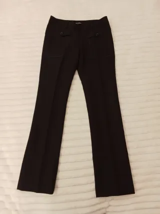 Pantalones de vestir rectos en color negro. Un básico versátil para cualquier ocasión. - Corte recto. - Dos bolsillos delanteros con solapa y botón. - Cierre de cremallera y botón.