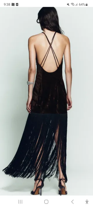 Vestido midi terciopelo flecos. Zara.Talla S. Nuevo con etiqueta Espalda descubierta. Cuello halter