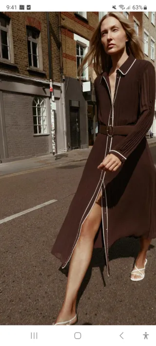 Vestido midi plisado. Zara. Talla M. Nuevo con etiqueta. Cinturón incluido Forro interior.