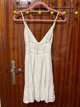 Vestido de Zara Basic con un diseño elegante y detalles únicos. Tiene dentro un forro para evitar transparencia. La parte inferior ademas del forro tiene dos volantes. - Tejido ligero y vaporoso. - Adorno bordado con detalle sobre la cadera. - Corte fluido.