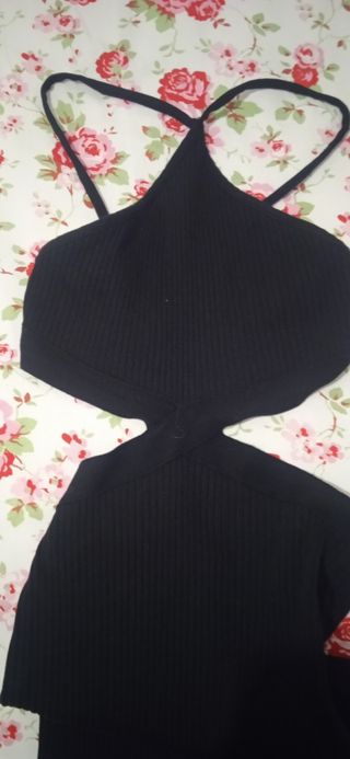 Con un solo tirante y una abertura en costado Es fino y elastico Es de pullbear quite la etiqueta porque molestaba