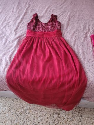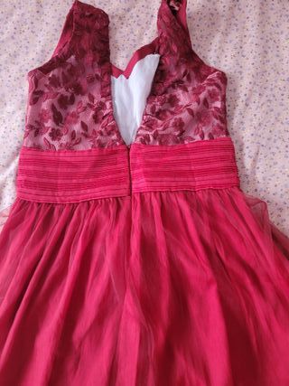 Bonito vestido de fiesta con detalles de encaje. - Espalda semiabierta - Poco uso - Diseño con escote en V. - Cintura marcada con fruncido que hace efecto muy favorecedor - Falda de tul.
