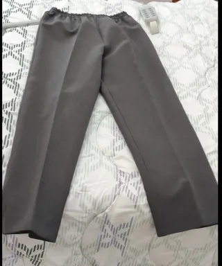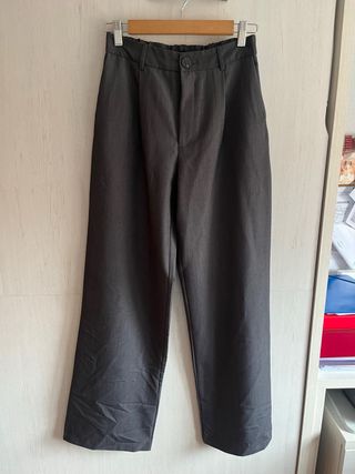Pantalones de vestir de corte recto y color gris. Cuentan con cintura elástica y cierre de botón. - Diseño elegante. - Tejido de calidad. Solo se han utilizado una vez!
