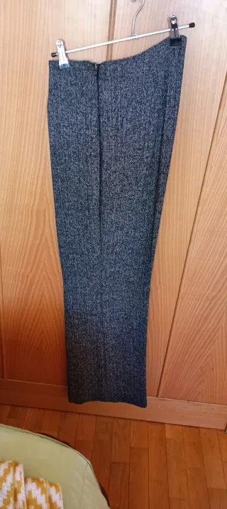 Pantalón de terciopelo negro de ZARA, talla S. Corte recto y fluido, con una caída elegante gracias al tejido de terciopelo. Ideal como pantalón de vestir o de fiesta, para eventos, cenas o looks arreglados. Cuenta con cierre mediante botón y trabillas en la cinturilla para poder añadir cinturón si se desea. ✔️ Sin estrenar ✔️ Terciopelo en perfecto estado, sin marcas, roces ni desgaste ✔️ Color negro ✔️ En perfecto estado Entrega en mano o envío por Wallapop. Si necesitas medidas o más fotos, no dudes en escribirme.