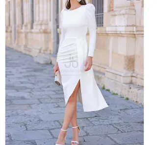 Vestido de tejido suave y cómodo, con un diseño moderno. - Manga larga. - Diseño con hombros descubiertos. - Corte holgado.