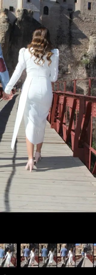 Vestido de encaje con un diseño elegante y delicado. - Tejido de encaje - Incluye un vestido interior tipo slip dress. - Mangas largas abullonadas. - Da para una talla L pero puede que para una Xl