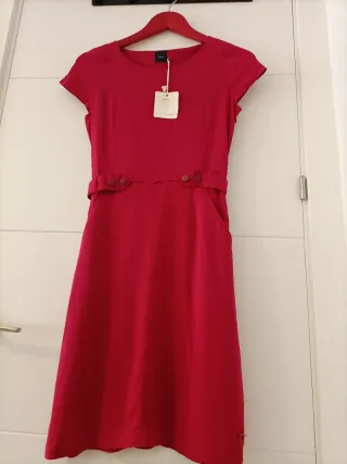 Vestido de la marca Skunfunk en color rojo. - Diseño con mangas cortas. - Detalle de cinturón o fajín en la cintura. - Bolsillos laterales.