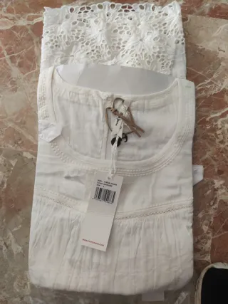 Vestido de mujer con un diseño delicado y elegante. NUEVO CON ETIQUETA. Talla S. Pepe jeans - Detalle de encaje en la parte superior. - Tejido ligero y transpirable. - Adornado con puntillas y fruncidos.