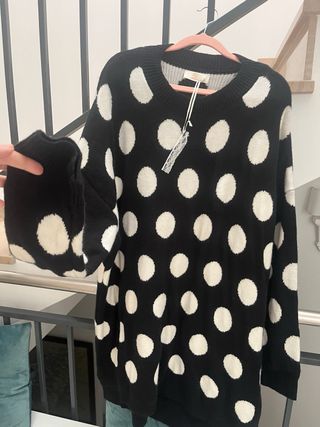 Vestido de punto con un divertido estampado de lunares. - Diseño de lunares blancos sobre fondo negro. - Tejido de punto cómodo y suave.