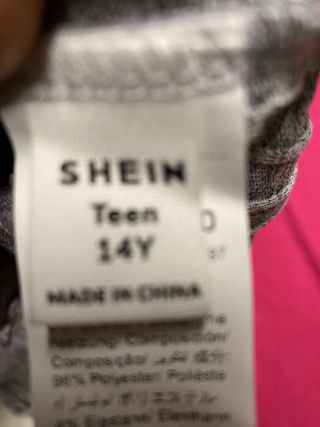 Vestido de la marca SHEIN, talla 14 años. - Color gris. - Composición: 90% poliéster, 10% elastano. - Fabricado en China.