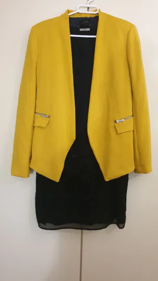 Blazer zara y Vestido intimissimi Negro Amarillo